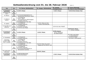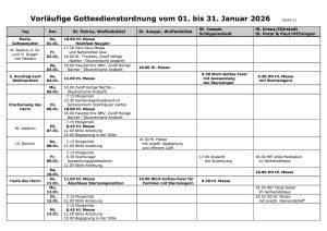 Auf diesen Seiten finden Sie eine Übersicht der Gottesdienste für die nächsten drei Monate.