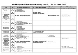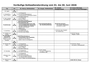 Auf diesen Seiten finden Sie eine Übersicht der Gottesdienste für die nächsten drei Monate.