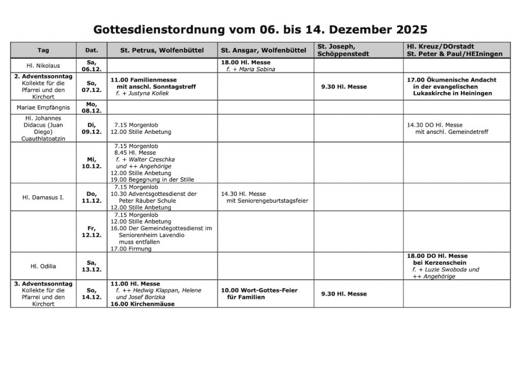 Aktuelle Informationen zu Terminen werden auf unserer Startseite veröffentlicht. Bei Fragen zu einzelnen Angeboten können Sie sich auch an das Pfarrbüro St. Petrus wenden.